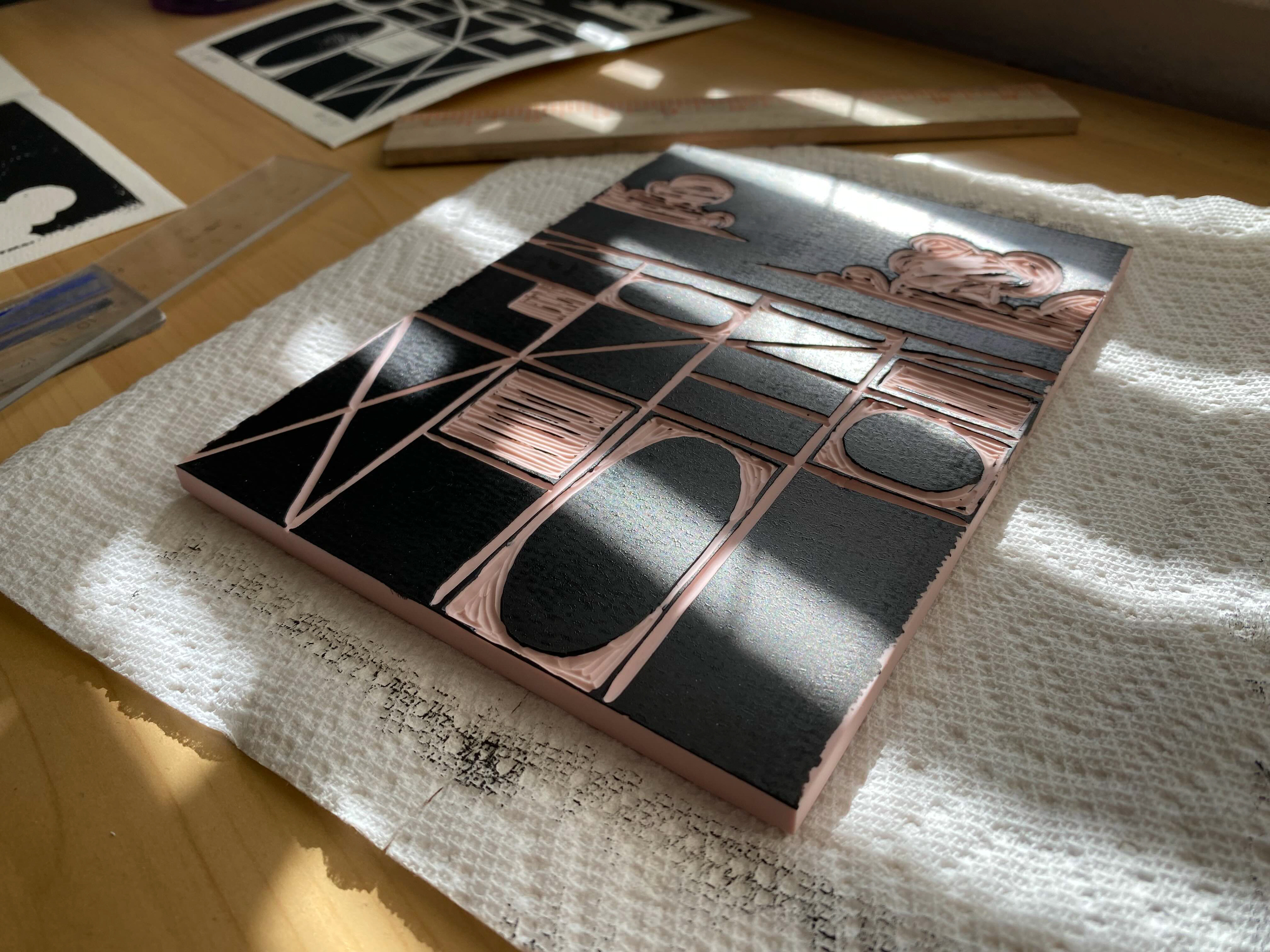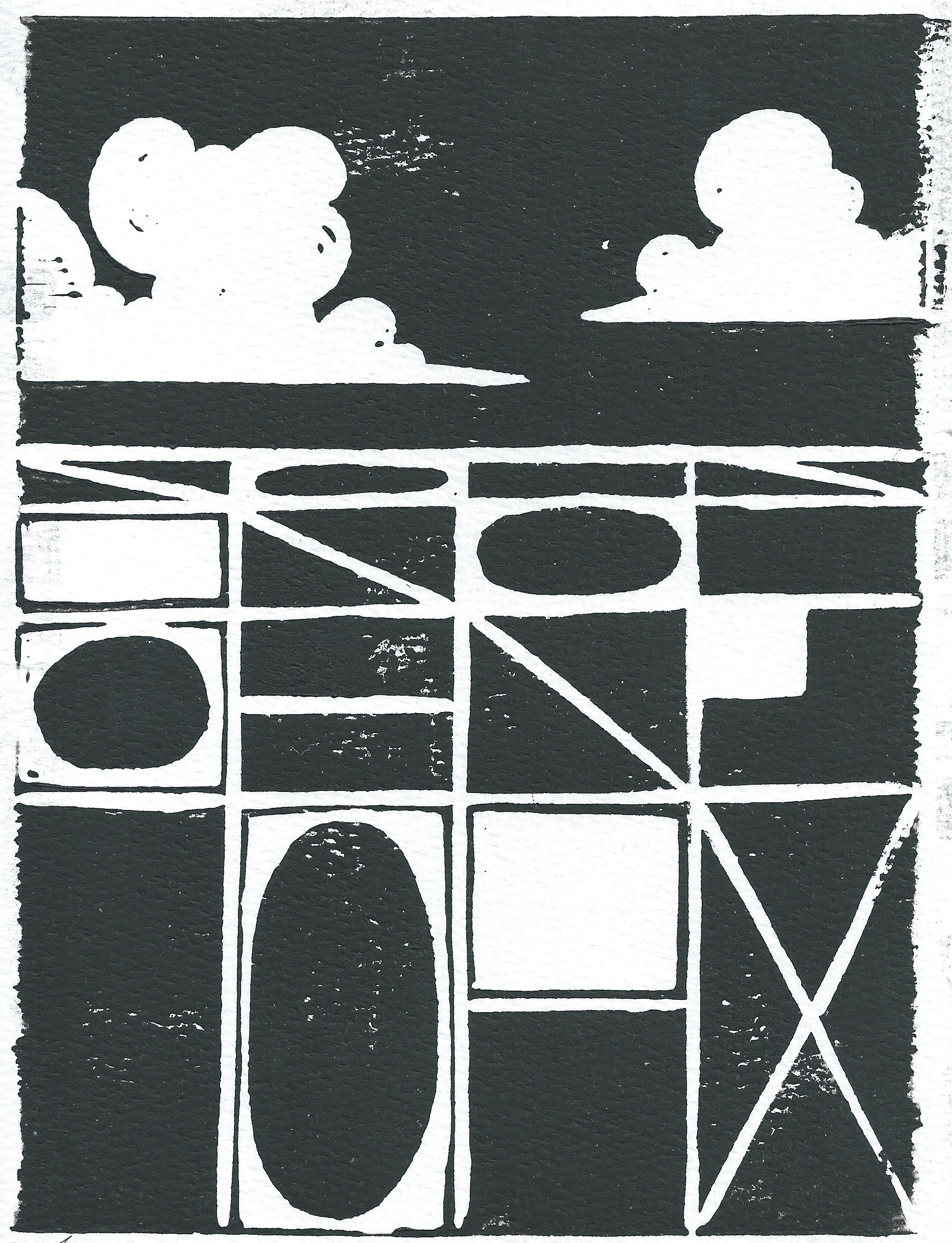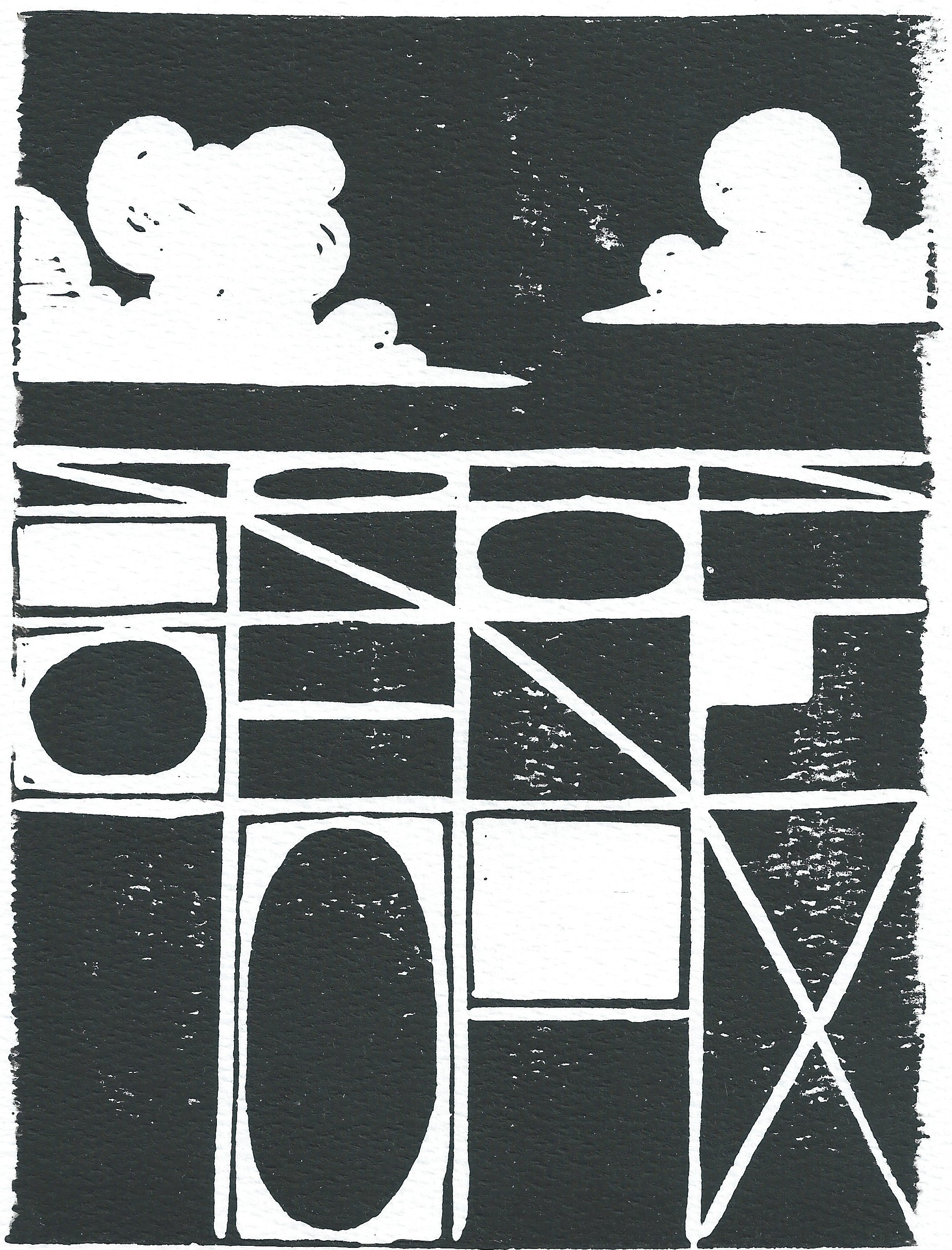 "Dark Skies" (Linocut Ink on Watercolor Paper) 6" x 8"