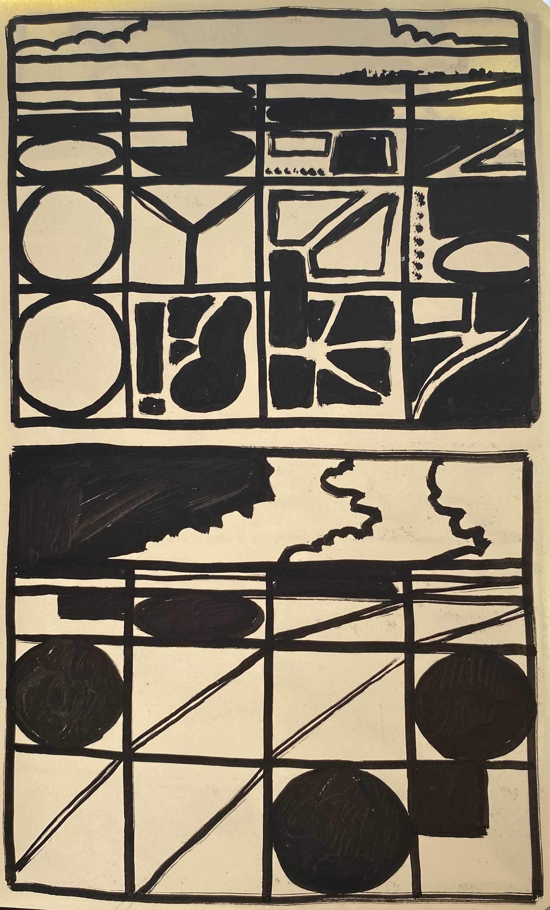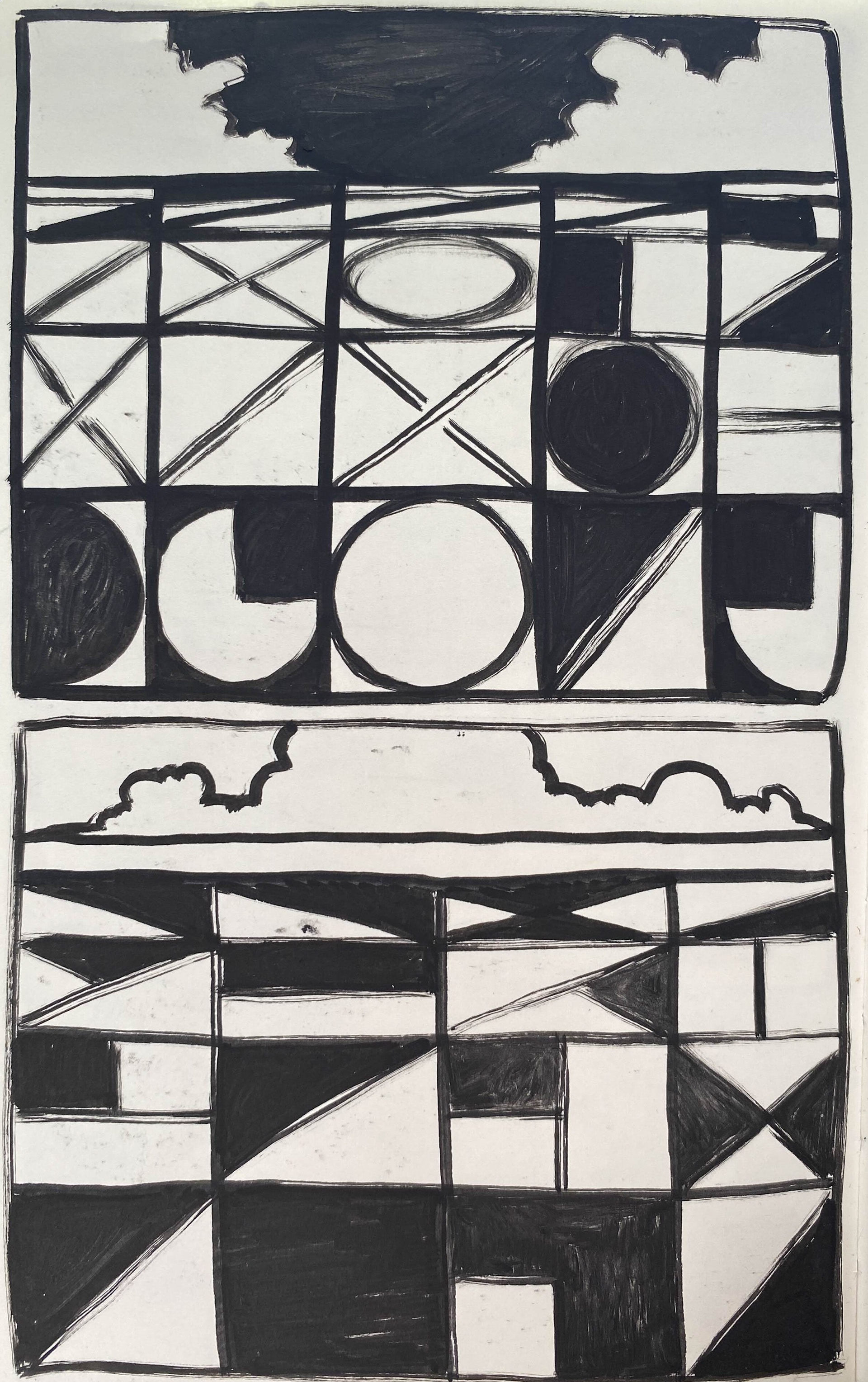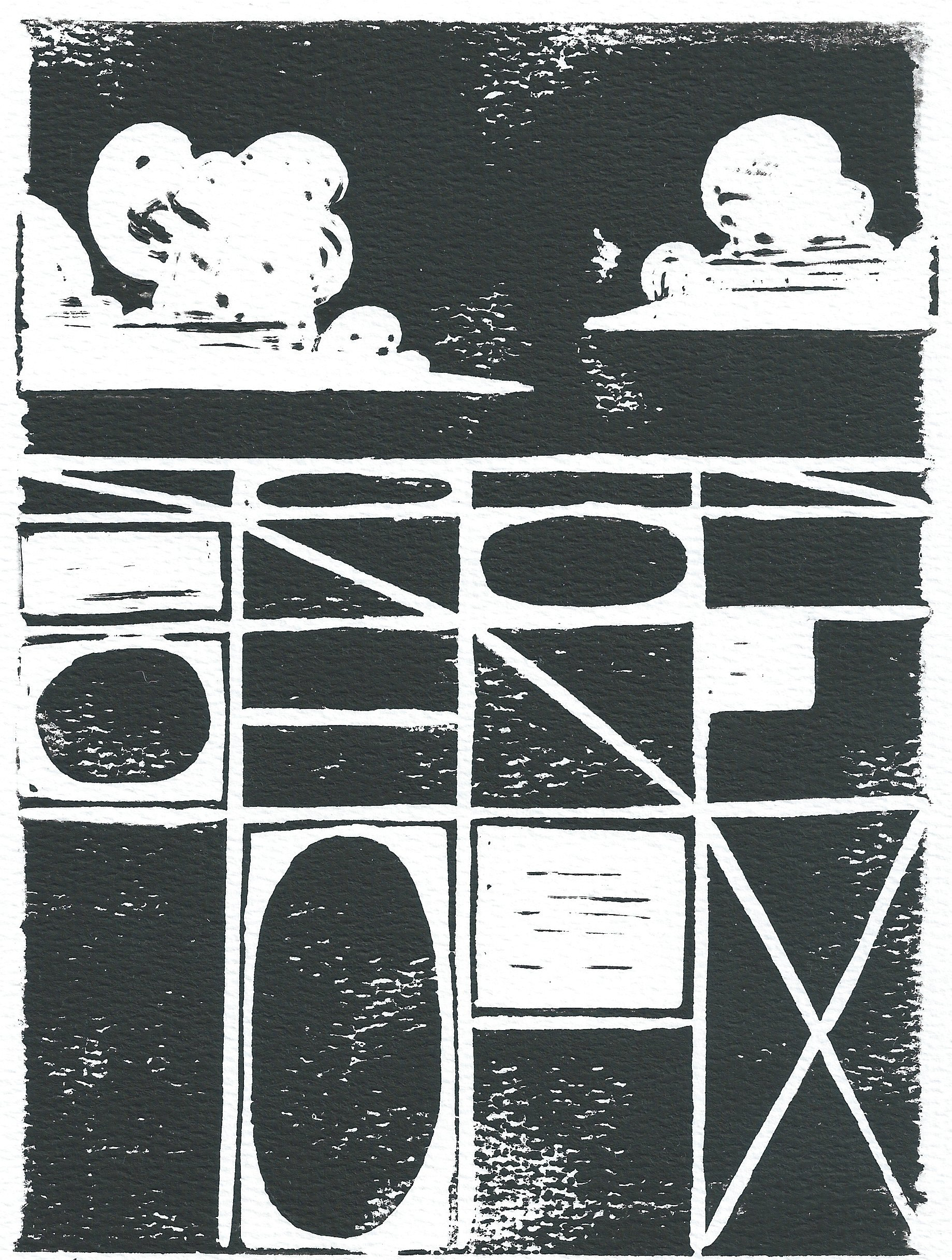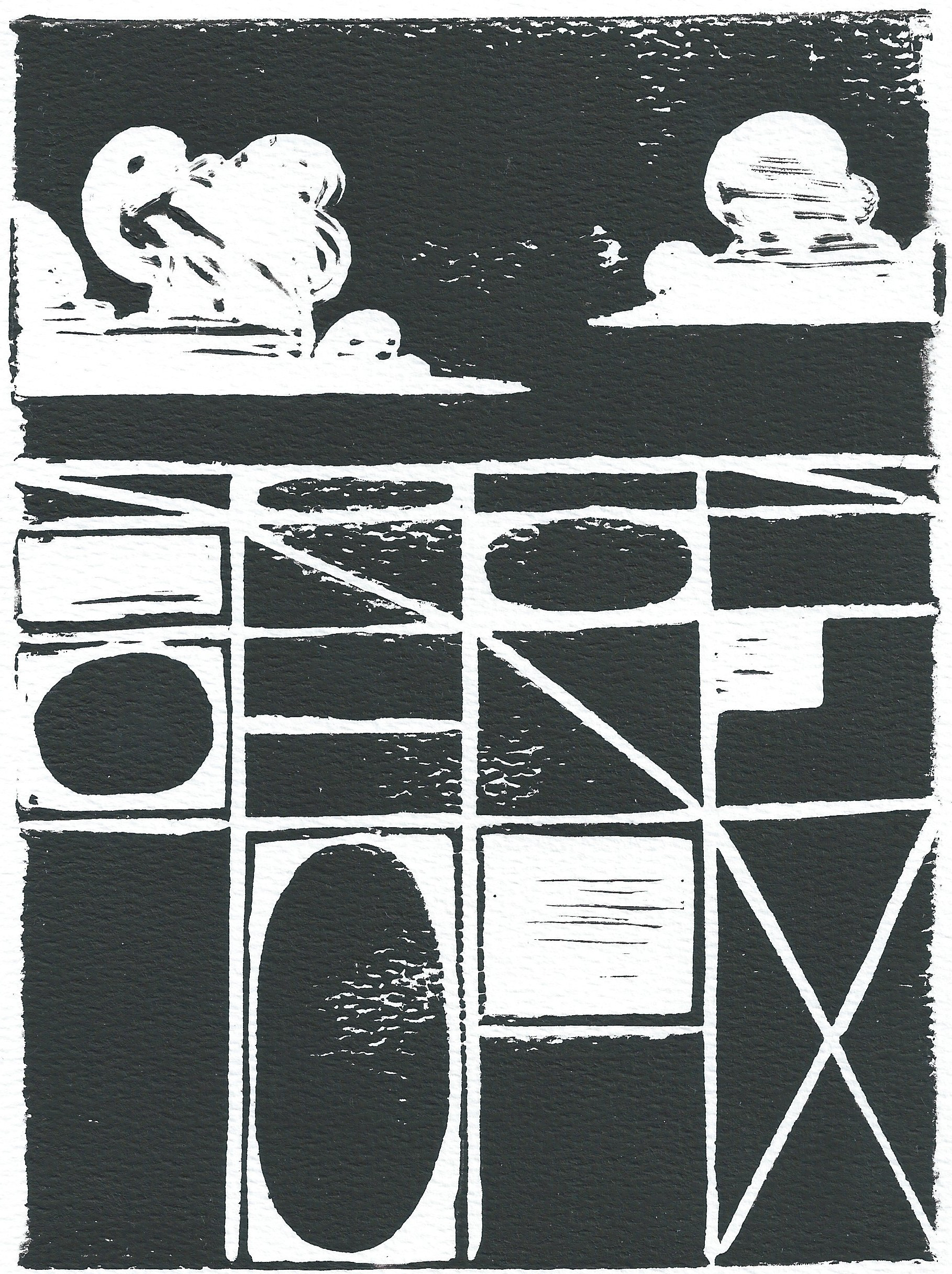 "Dark Skies" (Linocut Ink on Watercolor Paper) 6" x 8"